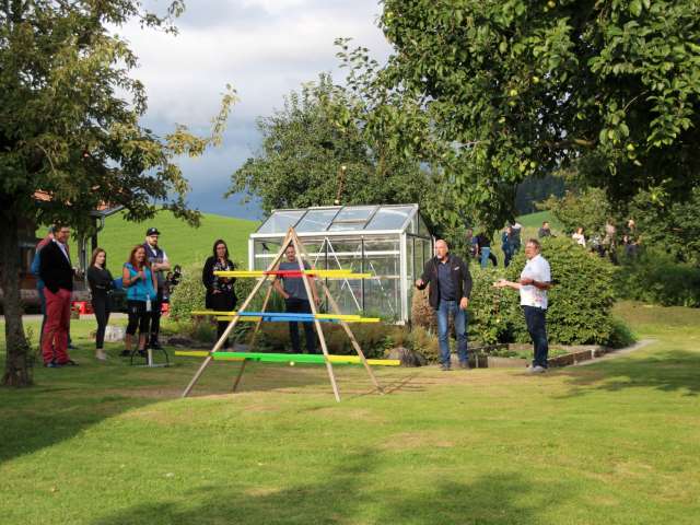 Starten Sie in die lustigen und nicht alltäglichen Hof-Disziplinen wie LEGO-Scharade, Hoschtet-Golf, «Triff den Schiedsrichter», Heinze-Golf oder Melkstuhl-Bingo. Es stehen bis zu 10 Spiele zur Verfügung. Diese werden je nach Wetter und Gruppengrösse vom Hof festgelegt. Gruppengrösse pro Spiel 8 bis 12 Personen. Dauer pro Spiel ca. 20 Minuten. Jedes Spiel wird von einem Guide betreut. Die Spiele haben alle entweder einen bäuerlichen Hintergrund oder entstanden aus den Hobbies der Familie Kläsi und spontanen Upcycling-Ideen!