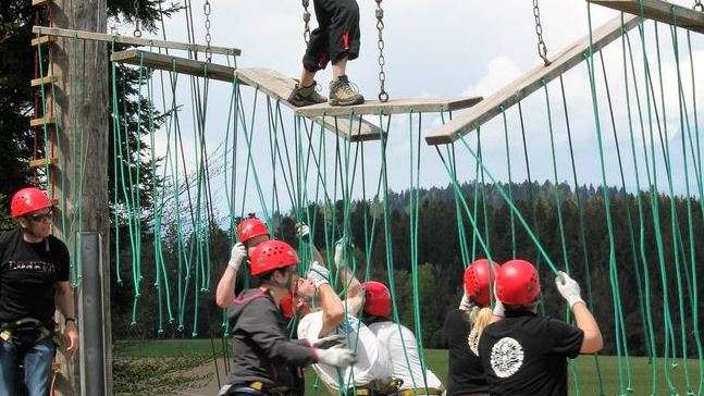 Organisationsentwicklung, wie auch Team- und Gruppenevents. Diese fest installierte Anlage besteht aus sowohl einfachen als auch spektakulären Übungen in der freien Natur. Sie vermitteln den Teilnehmenden authentische soziale, intellektuelle, physische und emotionale Erfahrungen.