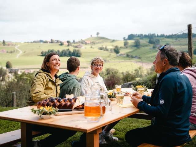 Vor, zwischen oder nach dem Essen, kann das Angebot mit einer Lamawanderung, Bauernhofspieli oder einem Zwirbeliradplausch bei dem hofeigenen Produkte gewonnen werden können, ergänzt.
