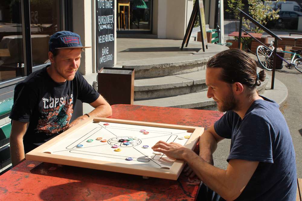 Führen Sie Ihre Spielfigur über den Dorfplatz, entschlüsseln Sie Wörter bei der Bibliothek, lösen Sie das rätselhafte Riesenpuzzle, finden Sie den Weg durch das Käse-Labyrinth, spielen Sie das grosse Leiterlispiel im Park, testen Sie Ihre Augen beim Augenmemo vor dem Optiker oder gewinnen Sie beim Frosch-Wetthüpfen auf der Treppe.