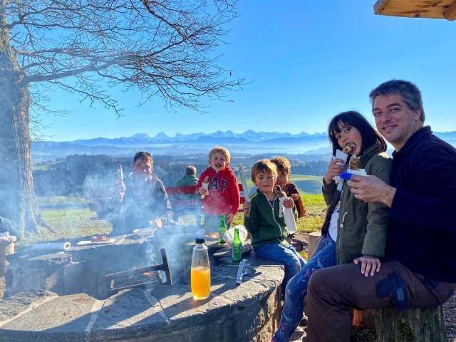 - Die Brätlistelle neben dem Denkmal lädt zu einer Pause ein. Sie besteht aus zwei komfortablen Schweizer-Familien-Feuerstellen, zwei grossen Holztischen und einem überdachten Depot mit viel Brennholz.