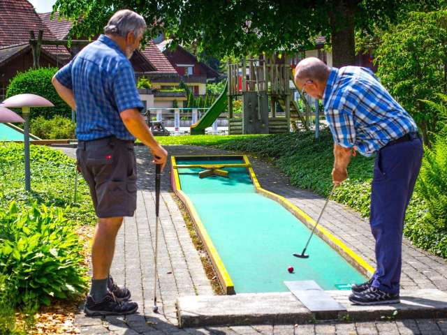 Minigolf im Eggiwil, direkt beim Hotel Hirschen. Vergessen Sie den Alltag und gönnen Sie sich das Vergnügen an der frischer Emmentalerluft!