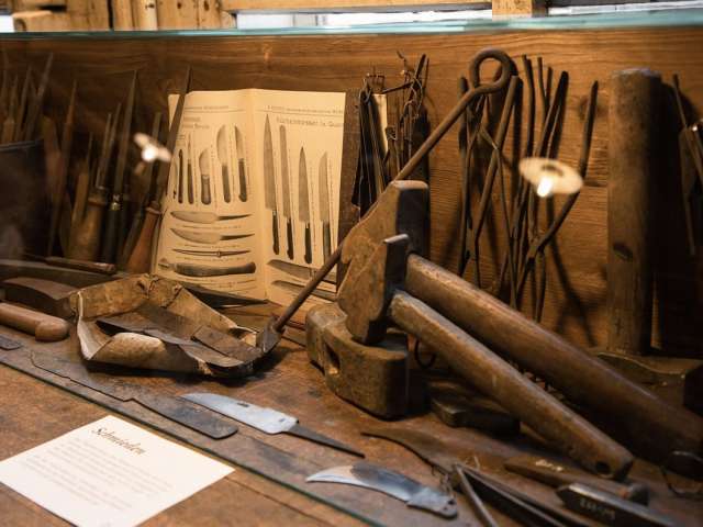 In dem Haus, in dem 1835 der Firmengründer Johann-Ulrich Klötzli als mittelloser Bub sein Handwerk erlernen durfte, unternehmen Sie eine kleine Zeitreise. Erhalten Sie einen Einblick in die Familien- und Firmengeschichte und in die Geschichte des denkmalgeschützten Altstadthauses. Die Scheren- und Taschenmessersammlung berichtet von kulturellen und gesellschaftlichen Entwicklungen - was hat die Talkäserei, der Würfelzuckers und die Schreibfeder mit einem Messerschmied zu tun? Die original erhaltene Werkstatt ermöglicht ein Eintauchen in das faszinierende Handwerk der Messerschmiederei und seiner Entwicklung durch die Zeit. Die Fülle an Produkten, die daraus entsteht und entstanden ist, kann im Sammlungsraum in wandfüllenden Schaukästen voller Scheren, Messer, und vielem mehr bestaunt werden. Anlässlich des 175jährigen Firmenjubiläums wurde in den alten Räumlichkeiten der Klötzli Messerschmiede, in denen fünf Generationen der Familie lebten und arbeiteten, ein Firmenmuseum eingerichtet.