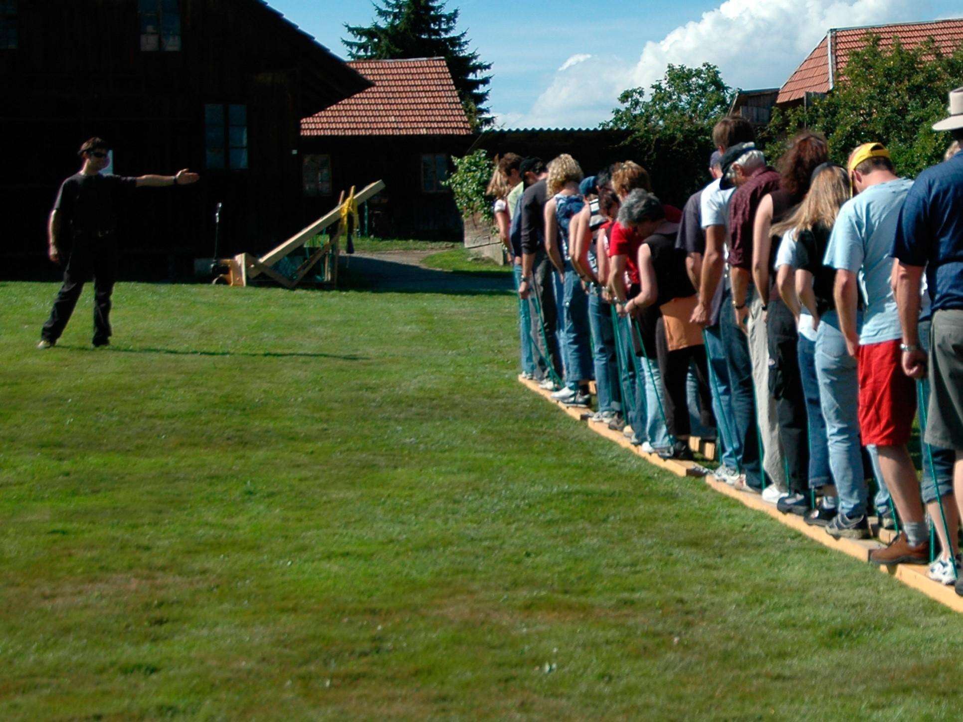 Die Outdooranlage in Affoltern i.E. steht für Geschicklichkeit und Zusammenarbeit. Welche Gruppe schafft den Skilatten Parcours? Findet die Gruppe durch reine Kommunikation die richtige Bilderreihenfolge? Haben die Schüler:innen beim Brettspiel Team-Balance die nötige Geduld? Bringt die Klasse als Team den Erdball zum Fliegen?