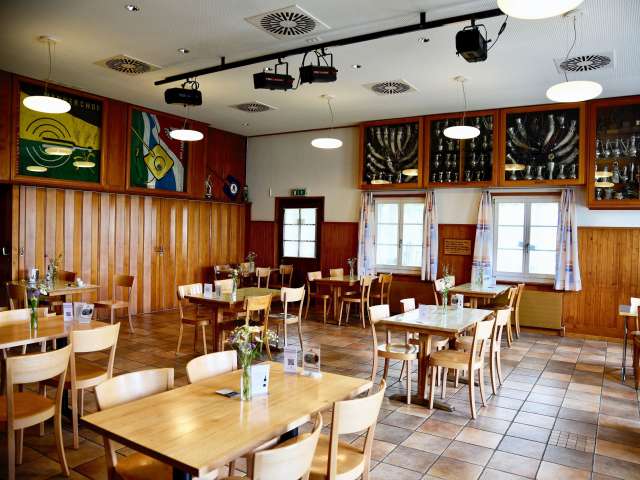 Die belebte Gaststube im rustikalen Stil, hier treffen sich Büetzer sowie Banker am selben Tisch.