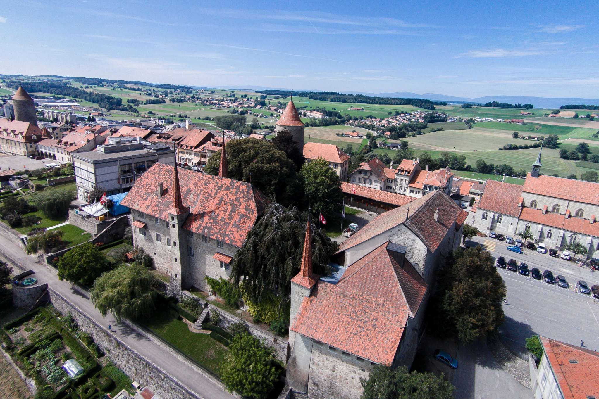 Der lauschige Schlosshof lädt zu einer Pause ein, während ein Blick über die Festungsmauern die Weite des Landes und die Alpenketten sichtbar werden lässt. Die Stiftskirche ist ein herausragendes Zeugnis gotischer Baukunst im Kanton Fribourg, und ein Gang durch die Gassen der Altstadt lässt den Besucher das intakte Ortsbild geniessen.