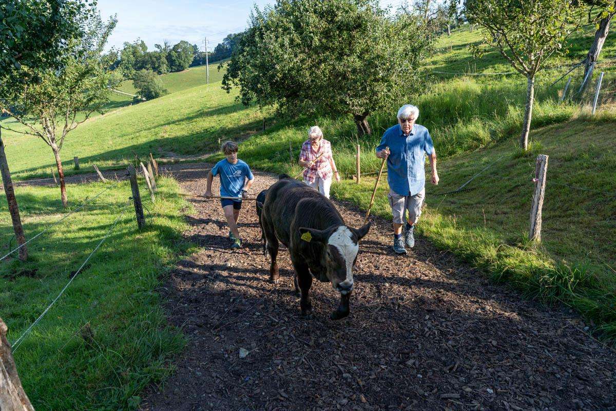 Der Hof, eingebettet in die Hügel am Rande des Emmentals nahe Huttwil, bietet eine atemberaubende Aussicht auf die Alpen und spektakuläre Sonnenuntergänge über dem Jura.