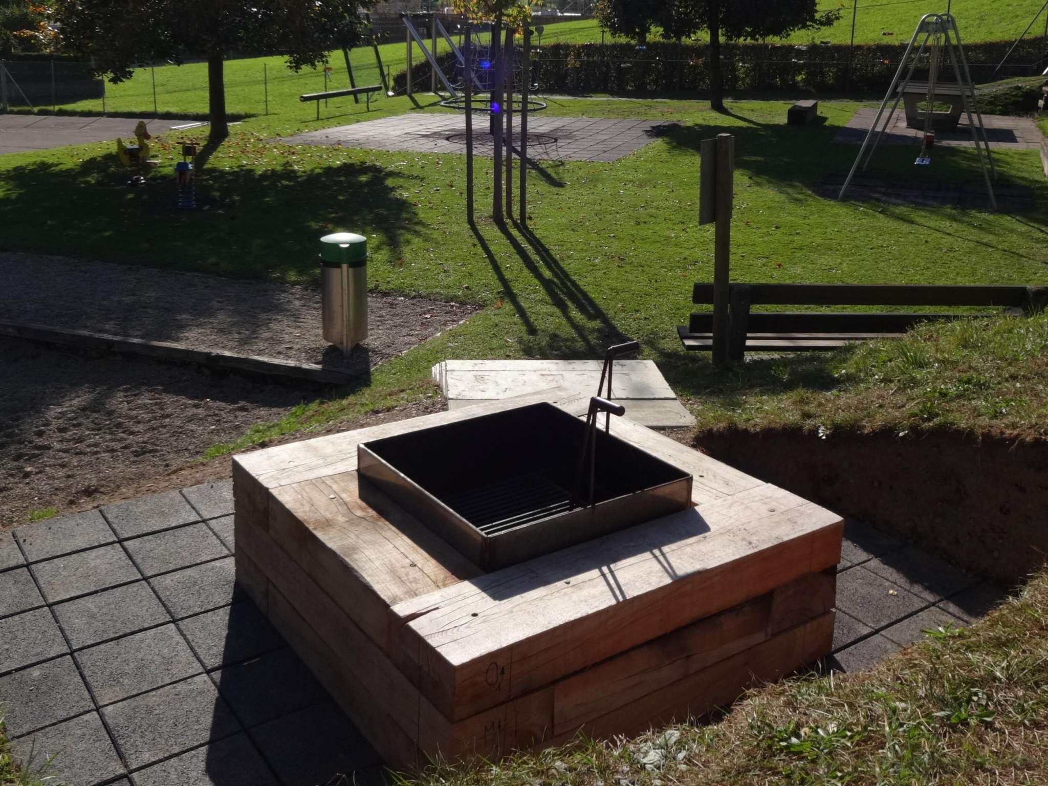 Schöne Brätlistelle mit Rost, Kinderspielplatz, Sitzgelegenheiten (ohne Tisch).