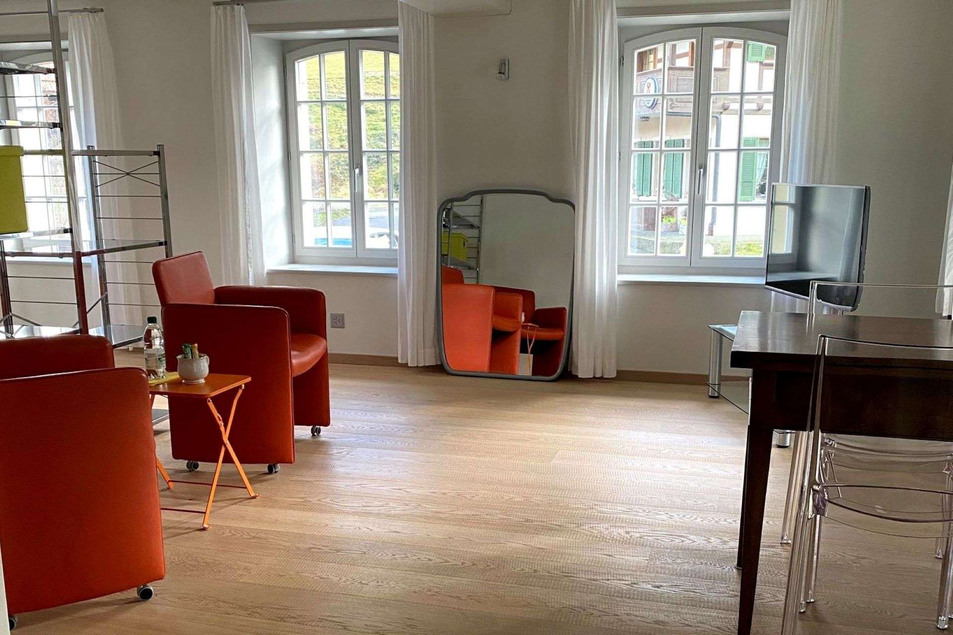 - Parkplätze (kostenlos) direkt vor dem Haus (keine Anbindung an die ÖV)