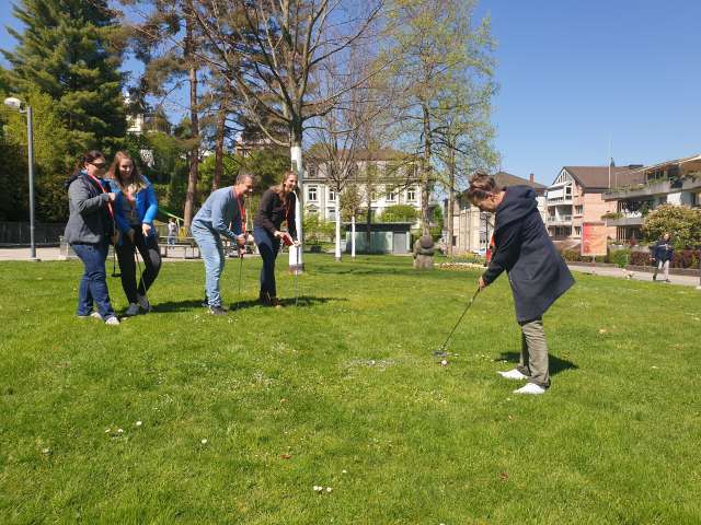Bis zu 50 Personen können mit dem weichen Golfball in den Gassen, über Wiesen und Brücken Golf spielen. Die 9-Loch-Bahn ist beim Urban Golf Parcours so angelegt, dass sich ein interessanter Stadtrundgang vom Bahnhofquartier über die Schützenmatte und durch die Altstadt von Burgdorf ergibt. Bestaunen Sie das Ambiente in Burgdorf, während Sie von einer Golfbahn zur nächsten spielen.