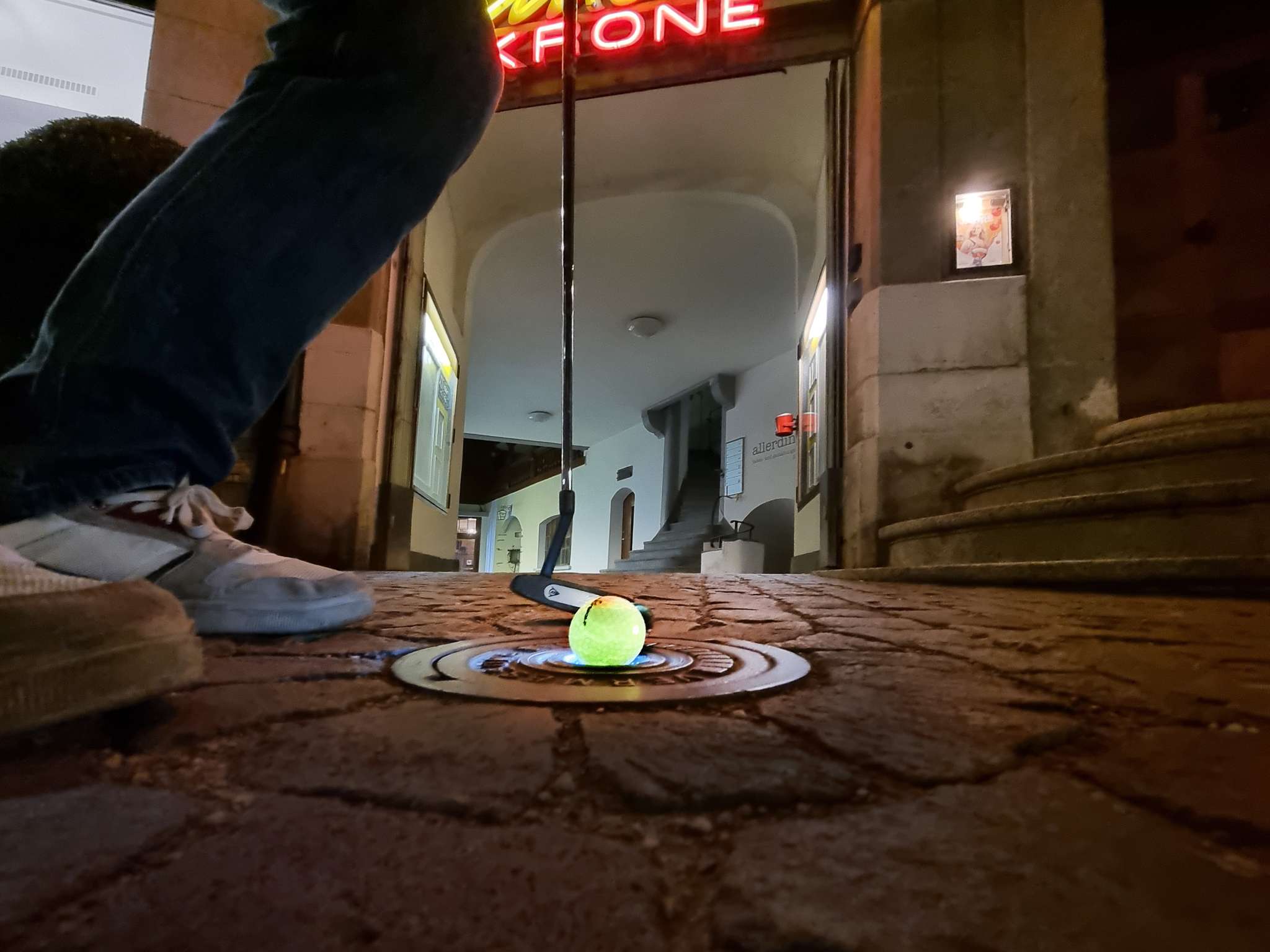 In der dunklen Jahreszeit oder abends kann auch Urban Golf gespielt werden. Es stehen leuchtende Golfbälle zur Verfügung, so dass Sie diese auch in der Dunkelheit locker wieder finden, falls Sie das Ziel verfehlen sollten.